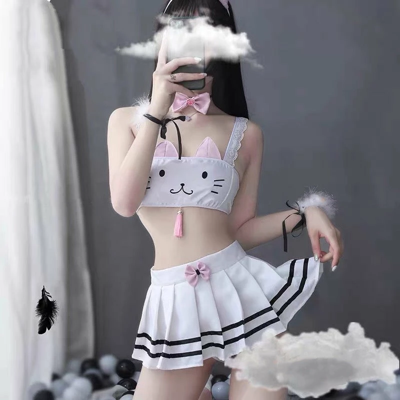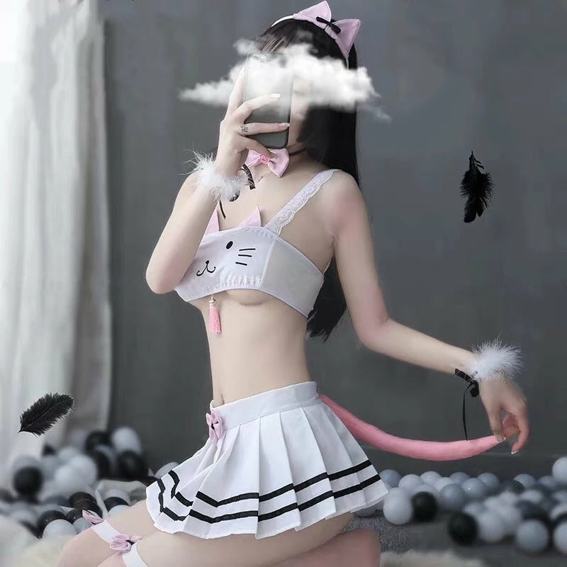 Contains: headband + neck ring + bracelet + tube top + short skirt + panties