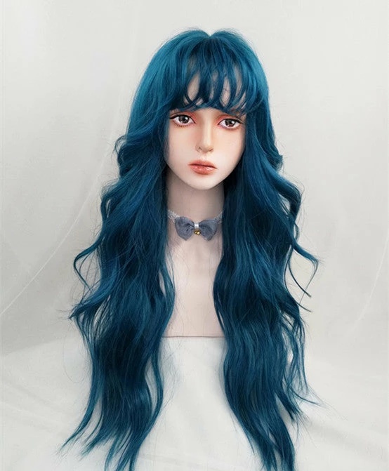 Unzzy HOT SALE Blue Green Long Curly Wig KF82138