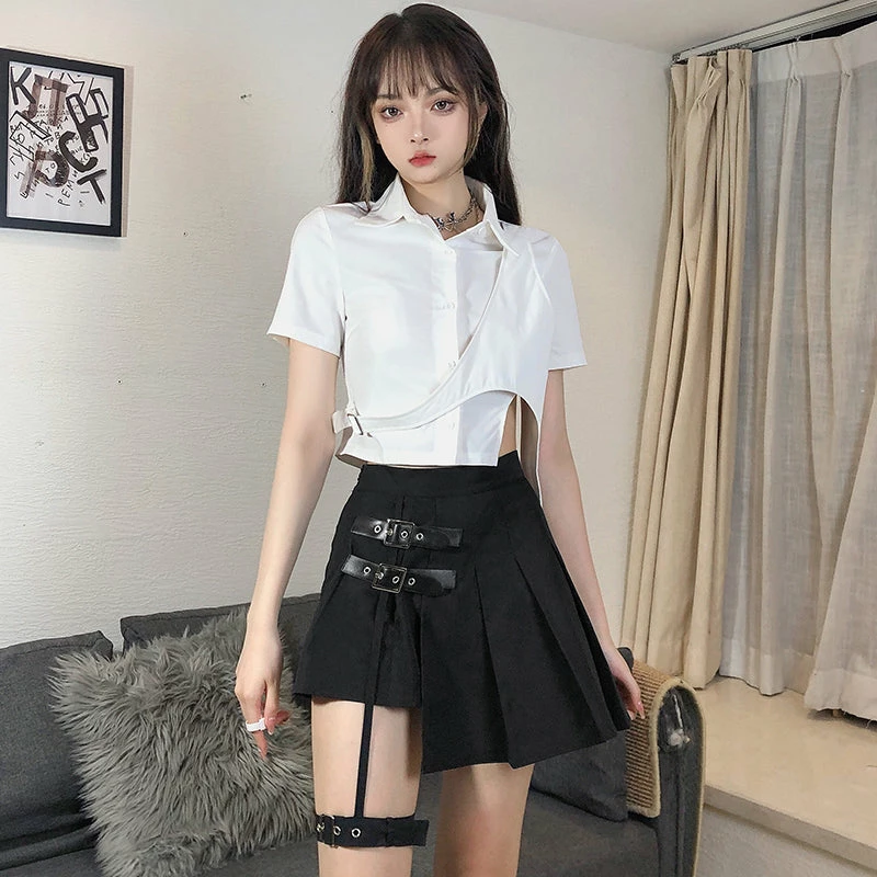 Be the first to review “Unzzy Punk Asymmetric Leather Button Pleated Skirt KF82160” Cancel reply