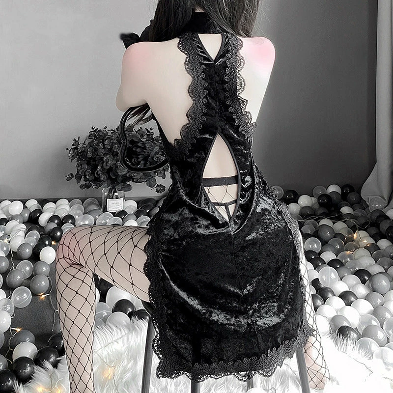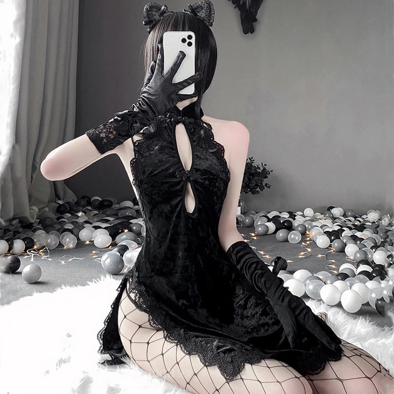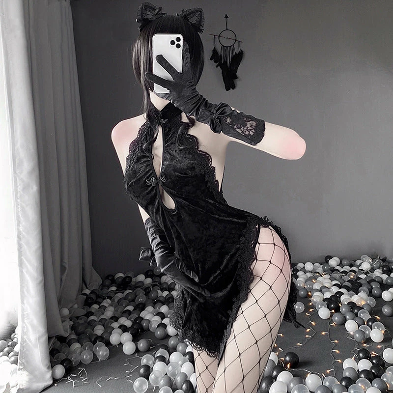 Color classification: cheongsam + t pants + fishnet socks