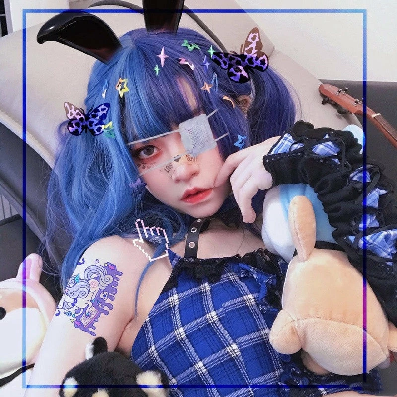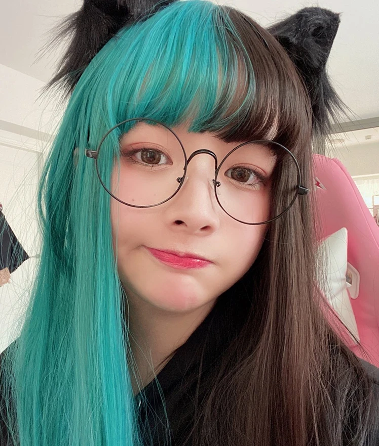 Color: brown-green,blue-green straight hair, blue-green curly hair